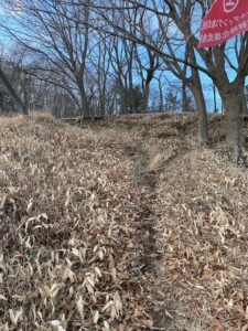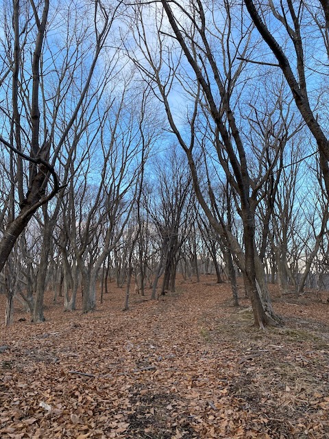最初の山は「王子山」標高約37m。坊主山とも呼ばれているみたいですね。遠足等で行く山らしいです。この日は雪は全くないけど風がとにかく冷たくて寒さに負けないよう小走りになります。が、鹿の糞がびっくりするくらい転がってるので気をつけつつ、急いで山頂へ向かいました。