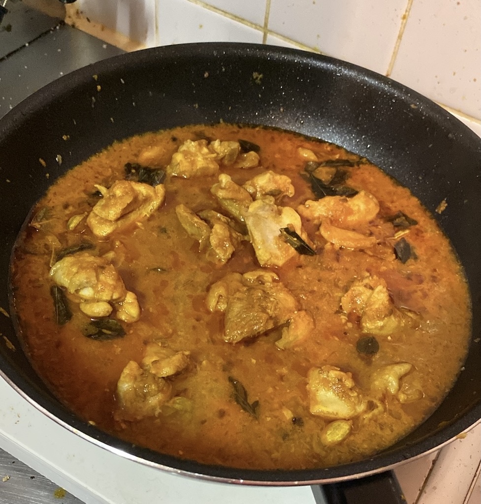 いつもは鉄フライパン使ってるけど、洗って加熱乾燥して放置してあったテフロン加工のフライパンがそのまま置いてあったので、コレでいいや、とそこにマスタードオイルを多分大さじ2位入れて弱火で加熱、そしてホールスパイス等加熱。使ったのはカルダモン・クローブ・クミン・フェンネル・マスタードシード、そしてベイリーフ、ドライカレーリフ、ヒングパウダー、多分それくらい。